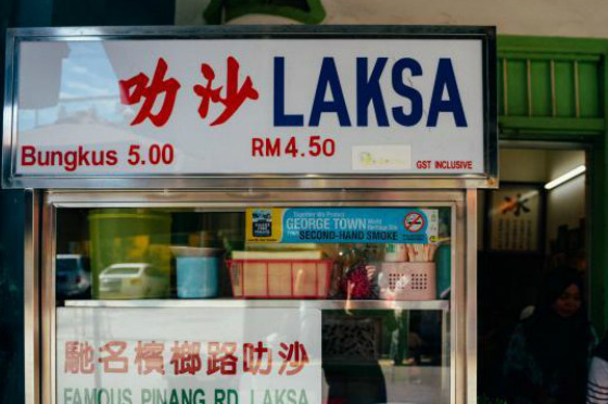 叻沙(Laksa)属于娘惹菜系,是其中最有代表性的一道菜品。烹饪叻沙的手法十分繁琐,不论是所需的材料还是熬制的方式都很难掌握:土锅炒制手工捣碎的香料,再将洋葱、南姜、黄姜、香茅、红辣椒炒香,和去骨的熟鱼肉加上椰浆一起熬制。叻沙要和粗米粉、虾和鱼片一起吃,并撒上麻疯柑叶、姜花和酸柑汁。