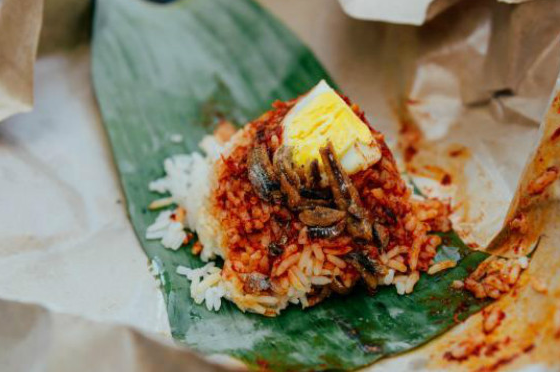 椰浆饭(NasiLema)是马来西亚的一道传统美食,顾名思义就是用椰浆烹煮米饭,再用一点香兰叶调味,加入江鱼仔、坚果、炸鱼,用香蕉叶包裹米饭后,更是增加了香气。