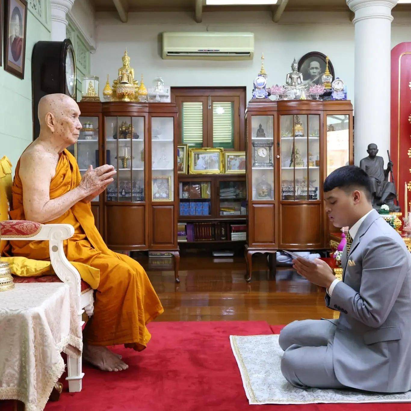 在泰国,即使是国王和王后,在一些高僧面前都是要行跪拜礼的,虽然民众见到泰王和王后,还有提帮功王子也都要行礼。