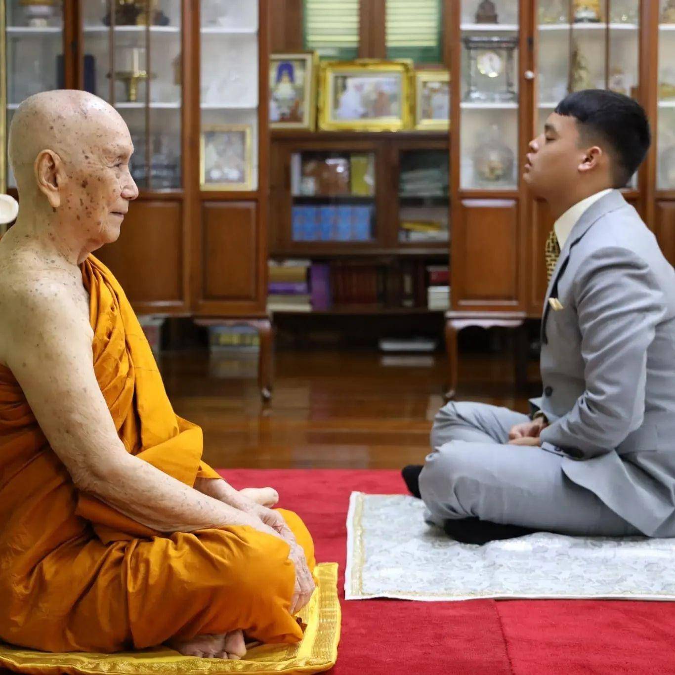带着老外一起来参拜高僧,提帮功王子这是传承泰国的传统文化啊!而且还亲自带着好朋友一起感受这样的文化。