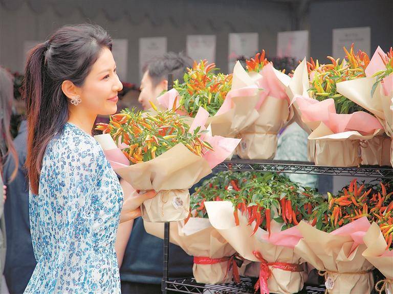 ▲用辣椒做成的花束。 深圳晚报记者 陆楚一 摄