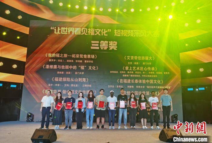活动期间,举行了“让世界看见福文化”短视频采风大赛颁奖仪式。该赛事于2022年7月21日启动,一年的时间里,先后组织海外留学生和网络大V到省内多地集中采风,通过短视频的方式记录下他们眼中的福建。