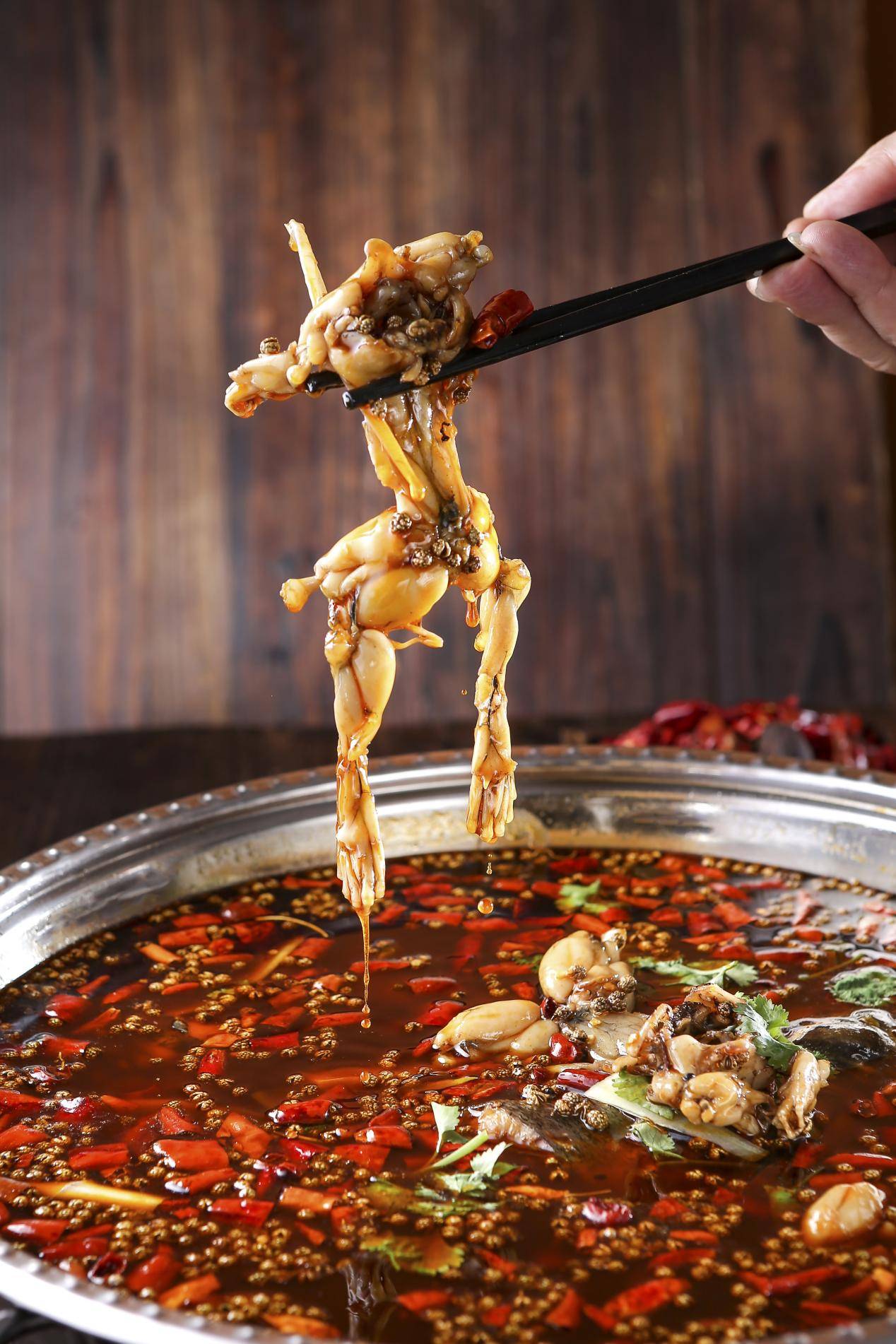 众所周知,火锅是四川的名片,号称万物皆可烫的火锅,自然也不会放过鲜嫩诱人的蛙蛙。自蛙蛙出道以来,CP不断。无奈肥肠、鸡肉、排骨皆过客,最终在火锅里被锁死的一对,是美蛙和鱼。