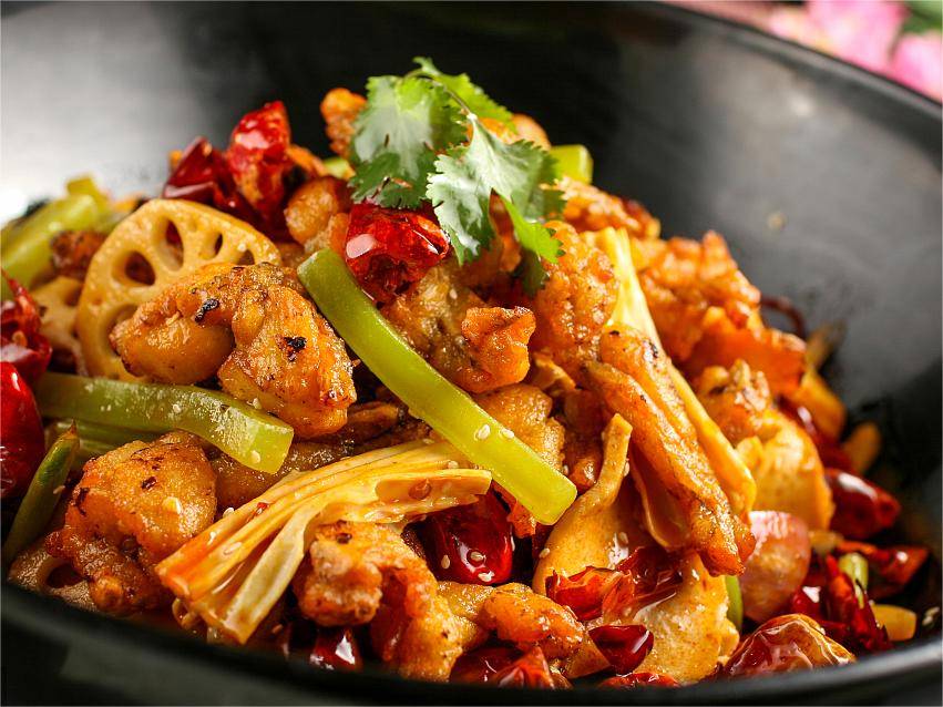 四川哪里的蛙最辣?内江自贡了解一下。在自贡,蛙和兔实力相当!仔姜作为兔肉的灵魂伴侣,与水灵白嫩的蛙也能碰撞出引人垂涎的舌尖反应。炒好的蛙肉纵身跳入混了仔姜丝、小米辣、青花椒、泡椒、姜蒜泥的红汤中,鲜辣刺激的香气和红亮诱人的色泽一起直侵五官,用“以毒攻毒”的方式,在大汗淋漓中感受最为酣畅的夏日食记。
