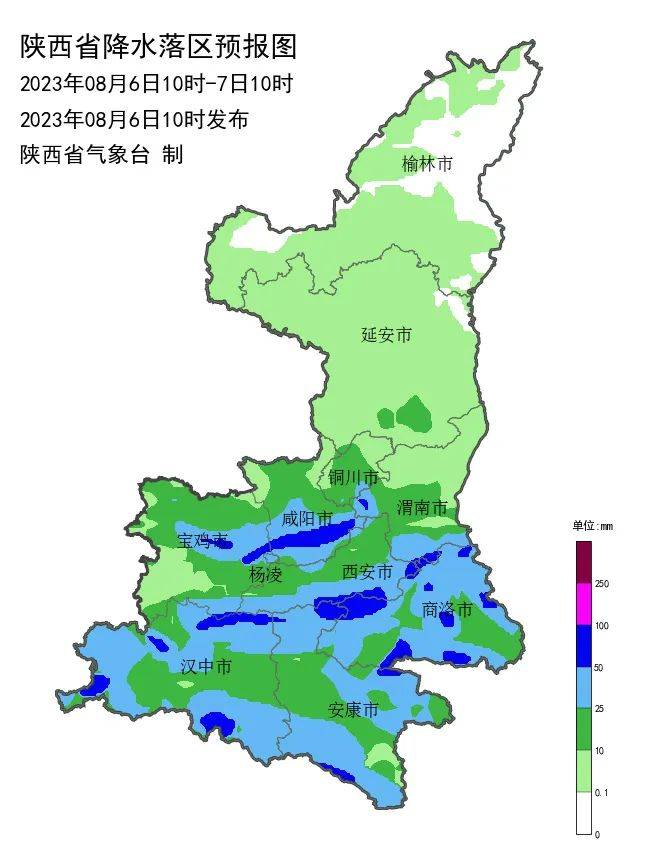 陕西省气象台2023年08月06日10时00分发布暴雨蓝色预警:受低层切变和副高外围暖湿气流共同影响,预计8月6日10时至7日10时关中、陕南大部地区将出现中到大雨(20~50毫米),降水对流性强,过程期间伴有雷电和短时暴雨(最大小时雨强20~50毫米,局地可达60毫米以上),局地伴有7级以上雷暴大风。其中,宝鸡中部和南部(凤翔、眉县、扶风、太白南部),咸阳南部(武功、乾县、礼泉、泾阳、三原),渭南局地(富平、华州区),西安南部沿山地区,汉中局地(勉县北部、城固北部、洋县北部、佛坪北部、宁强西部、南郑南部、西乡南部、镇巴南部),安康局地(宁陕北部、旬阳北部、紫阳南部、岚皋南部),商洛大部区县局地有暴雨或大暴雨(50~120毫米)。强降水影响区域易出现城市内涝、山洪以及滑坡、泥石流、崩塌等地质灾害,做好应急准备工作。由于对流性天气预报不确定性大,需密切关注当地预警信号和短临预报,适时采取应急措施,上述相邻县区也需高度关注。
