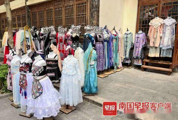 近日,在南宁市西乡塘区的相思小镇,南国早报全媒体记者看到,有多家服装出租店铺,生意还不错。