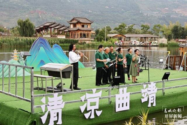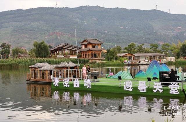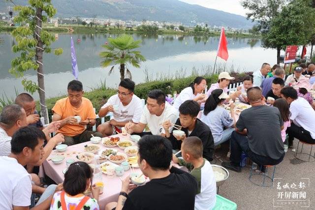 “将进酒,杯莫停,与君歌一曲,请君为我倾耳听……”8月5日晚,“清凉曲靖·避暑天堂”曲靖市美食文化节——万人长桌宴在景色旖旎的麒麟水乡盛大开宴,500桌麒麟生态杀猪菜在河道边一字排开,同步开吃,现场壮观不已。近万名游客齐聚水乡品美食、看美景,欣赏水上表演,晚风下的麒麟水乡成为欢乐的海洋。