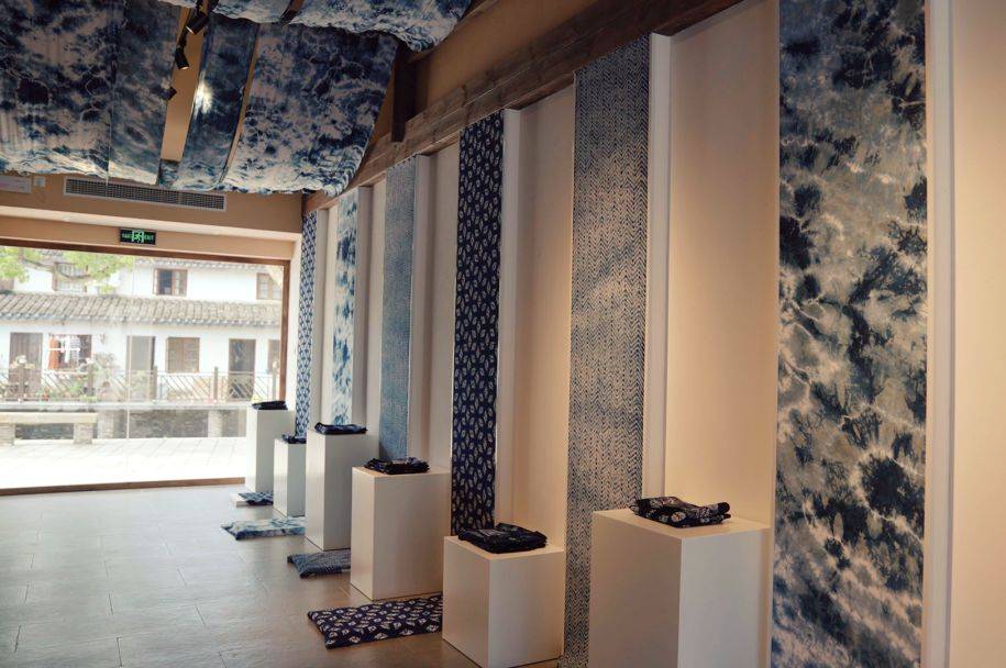 店铺内随处可见蓝白相间的扎染工艺品