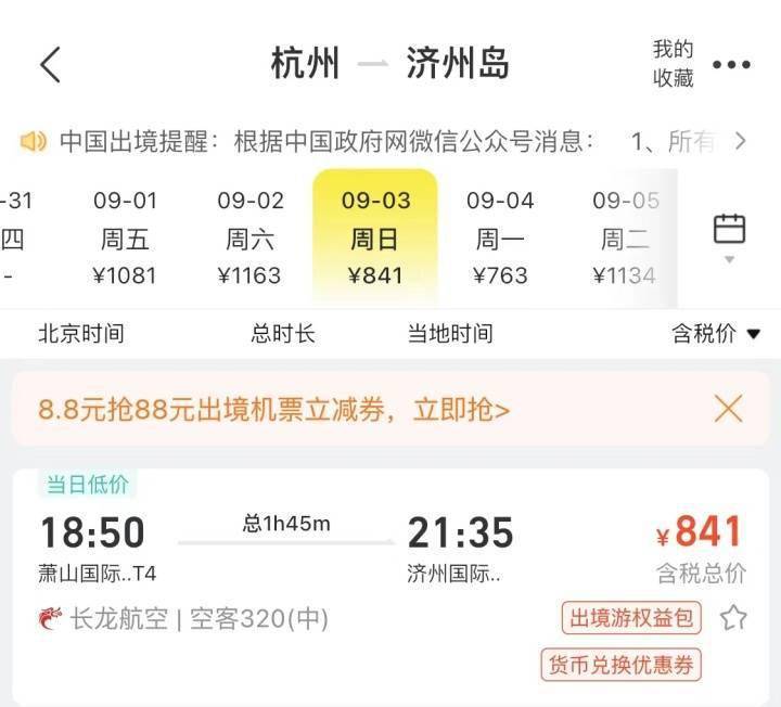 韩国和日本一直是杭州人出境国家的首选,虽然这两个国家还未开通团队出境旅游,但是暑期自由行热度很高。有旅行社业内人士表示,日本和韩国一来飞行时间短,二来签证方便,所以特别受年轻一族的喜爱。9月杭州直飞首尔1553元,杭州直飞济州岛841元。杭州飞大阪最低1319元,相比于国庆往返的万元机票,这个价格“诱惑力”满满。