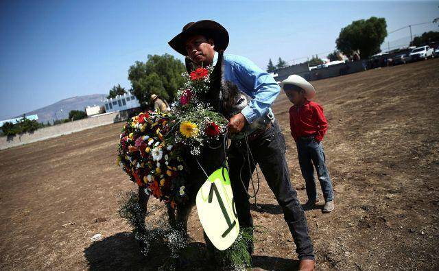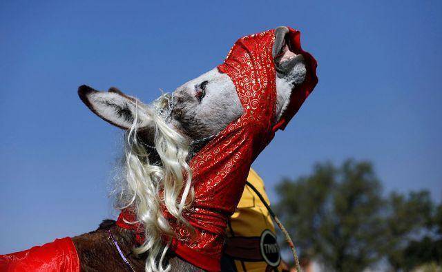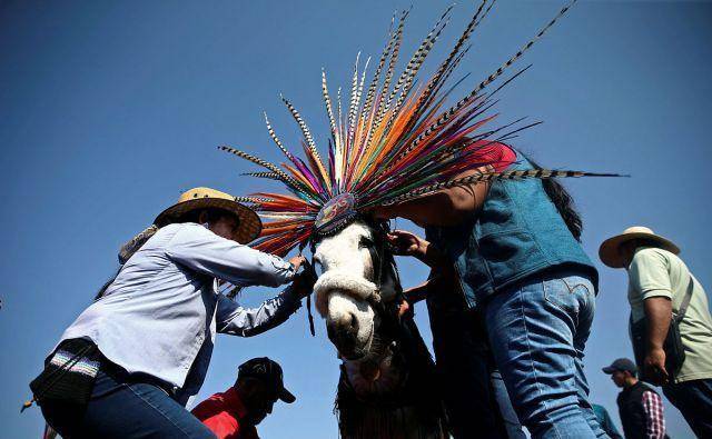 当地时间2019年5月1日,在墨西哥城附近的Otumba,当地举行毛驴节庆祝“五一”劳动节。