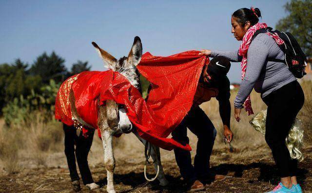 节日中最搞笑的要属化妆比赛,驴主人头天晚上把自己的爱驴化妆成各种各样的形象,其中多数是墨西哥政治人物。