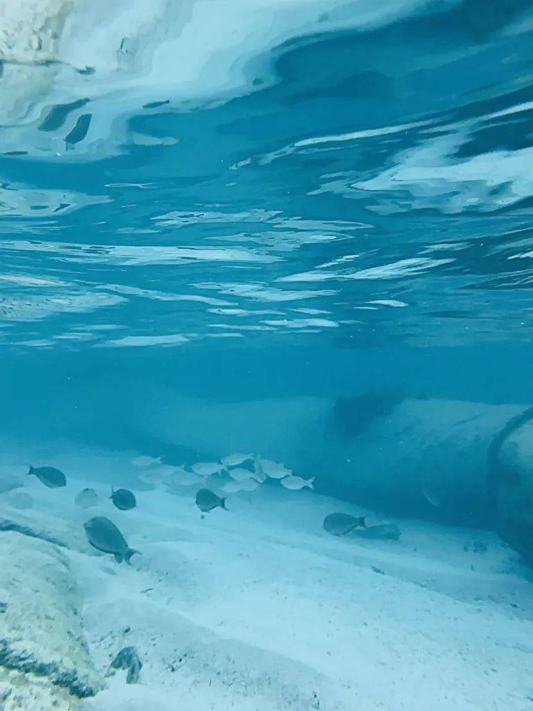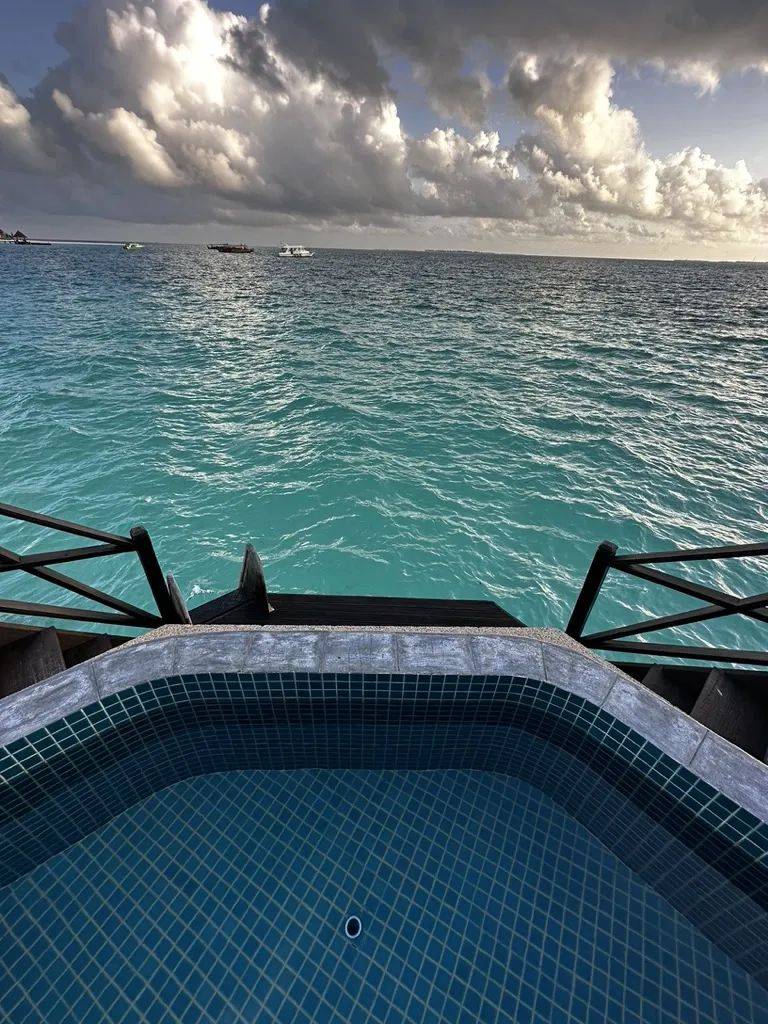 甲板上有个小池子,泡在池子里,幸运的话早上可以看得到鲨鱼巡游过来呢。