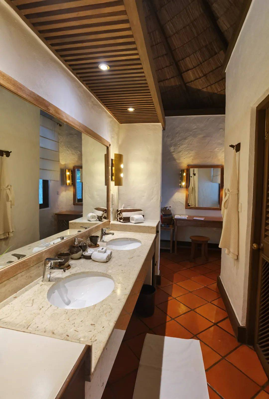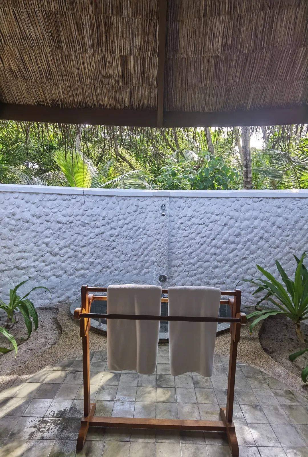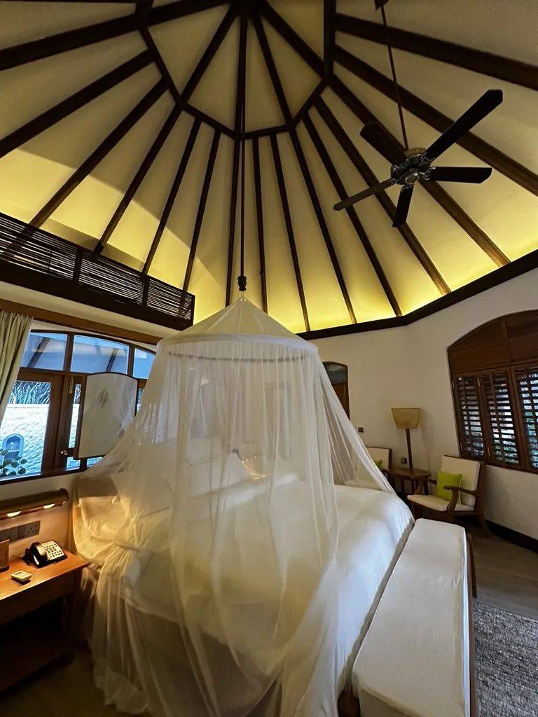 99栋别墅看着外观是传统的马尔代夫式建筑,海岛茅草房。但是住进去,空调给足,体感是很舒服的。