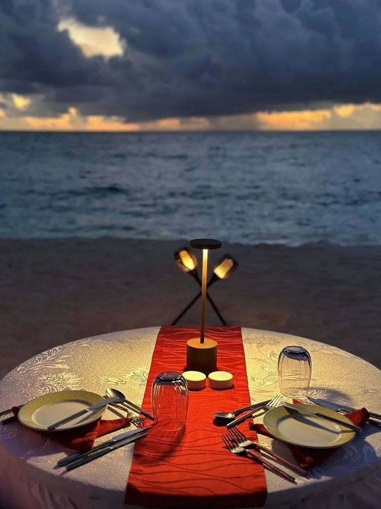 每天下午在拖尾长沙滩就能看到工作人员在布置用餐场景。