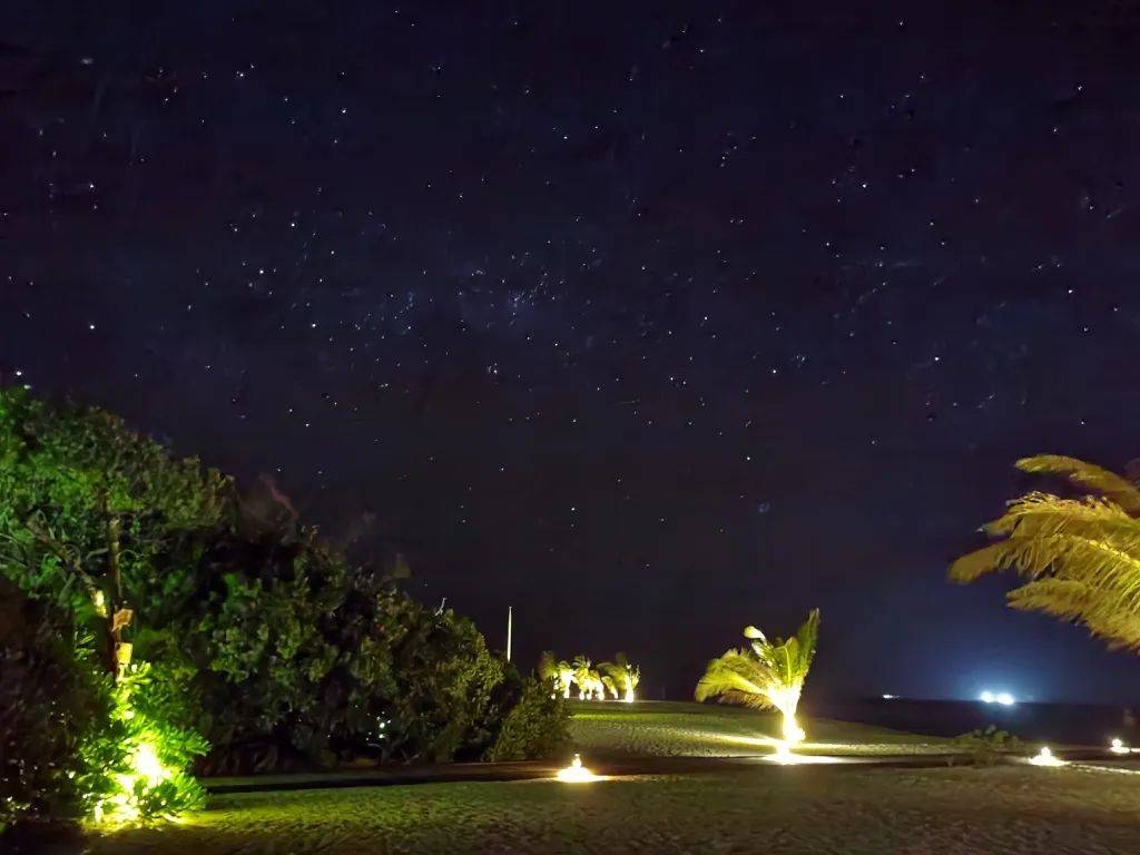 除此之外,夜晚的星空可以用「震撼」两个字来形容。我看到闪耀如白芒的南十字星,在肉眼可见的银河下,感受海浪、海风和海岛星空的绝美。
