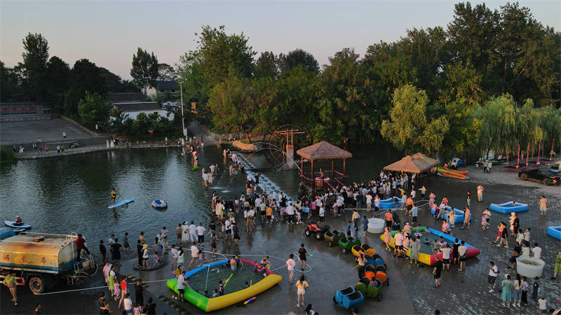 近几年的乡村振兴让莺河这个城郊小村收获了一波人气和知名度,成为了名副其实的“网红村庄”。“要想不成为‘过气网红’,就要一刻不停完善乡村业态”。这个夏天,宜城旅游部门、当地镇村和醉美莺河景区交流想法,集思广益,利用暑期这个旅游高峰,举办泼水季活动的方法,让这里依山傍水的“凉资源”变成“热产业”,做大消暑经济“蛋糕”,也成为宜城用绿水青山盘“火”消暑经济的一个缩影。