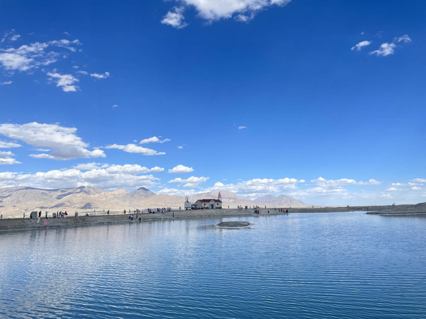 不同于茶卡的水体清浅, 大柴旦 零星分布的湖体大多水深而清,颜色更是绚丽,有蓝色也有翡翠绿色。