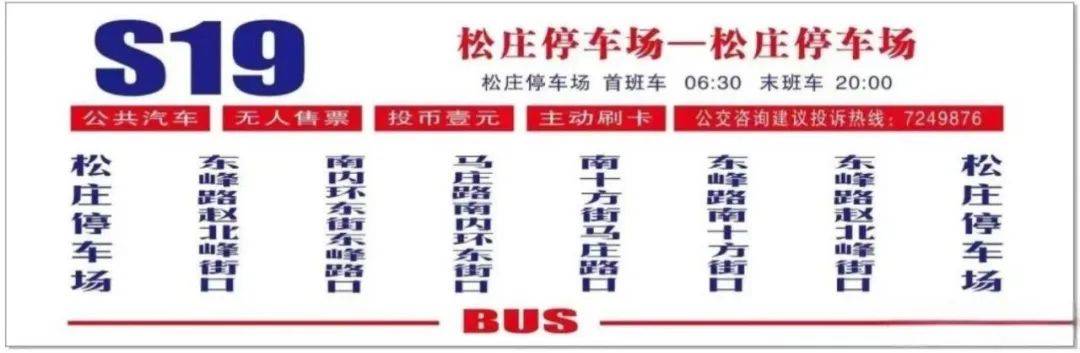 开通S19路社区巴士单向环形线路为方便东峰路(松庄停车场-南十方街)、南内环东街(东峰路-马庄路)、马庄路(南内环东街-南十方街)、南十方街(马庄路-东峰路)沿途单位及小区市民乘车出行,解决马庄路、南十方街东段公交盲区的问题。同时,为了缓解东峰路南段居民多次反映873路公交定点发车,趟次稀少,出行不便的问题。