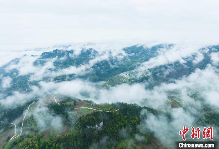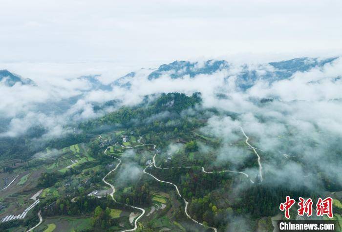 航拍贵州务川乡村云雾缭绕。 唐哲 摄