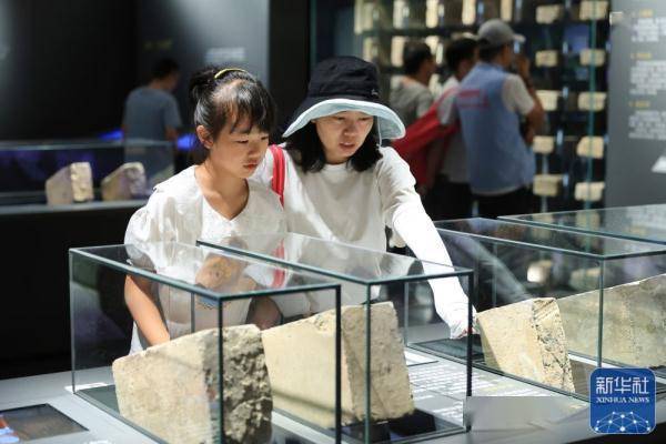 8月6日,家长陪伴孩子在位于江苏省南京市的南京城墙博物馆参观。新华社发(苏阳 摄)