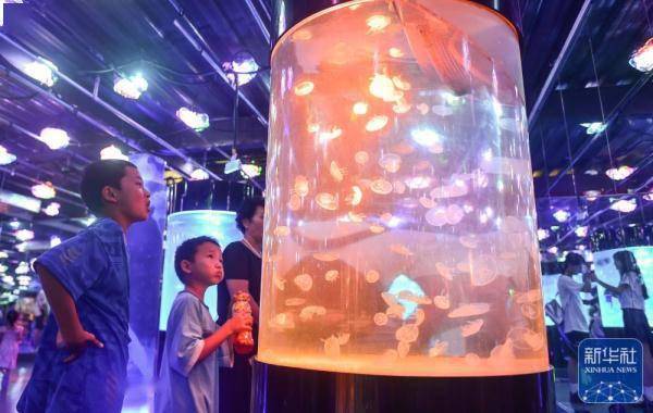 8月6日,家长带着孩子在河南洛阳龙门海洋馆参观。新华社发(黄政伟 摄)