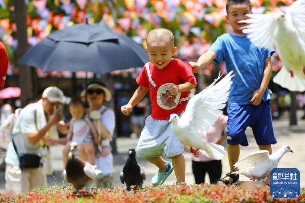 8月5日,小朋友在海南省三亚市南山文化旅游区游玩。新华社发(陈文武 摄)