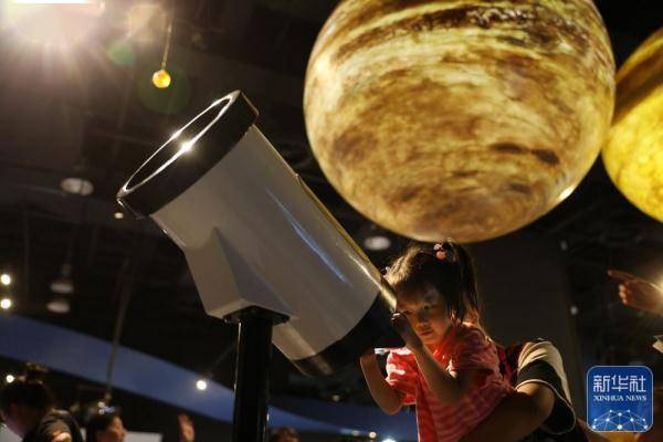 8月6日,一名小朋友在位于沈阳市的辽宁省科技馆里体验望远镜。新华社记者 姚剑锋 摄