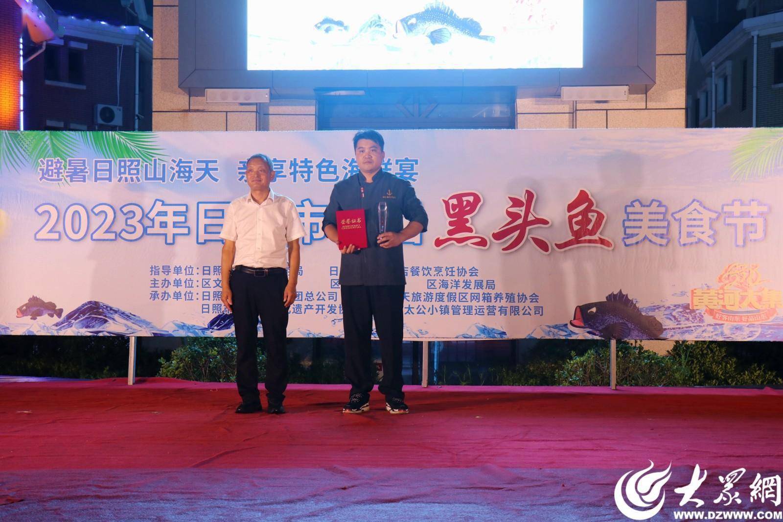 下午6点,日照市首届黑头鱼美食节启动仪式正式拉开帷幕。山海天旅游度假区网箱养殖协会会长王贤金,日照市旅游饭店餐饮烹饪协会会长孙传胜,山海天旅游度假区党工委委员、管委会副主任于冰分别致辞。