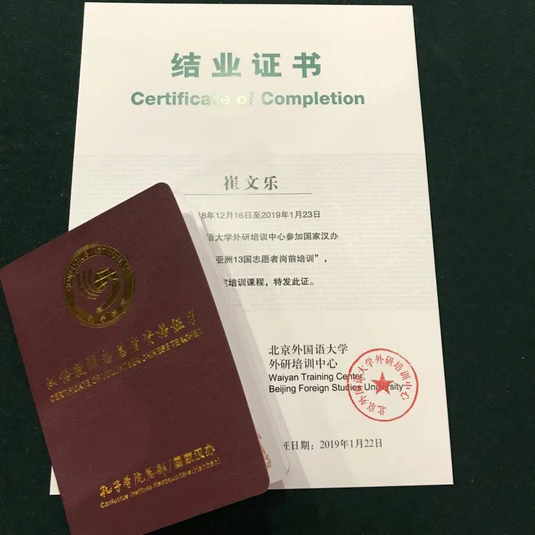 在外研社,我遇到了数百名和我一样的志愿者,我们怀揣同一个梦想即将奔赴异国他乡,白天学习京剧,听专家讲座,晚上一起做课件,看星星。一个月的集中训练,让我对自己的不足更为清晰,跟那么多优秀的志愿者老师们同吃同住同学习,我在他们身上学习到了更多对生活的热爱、对工作的热情。培训结束的那天,收到培训合格证书的时候,一切的坚持都变得有价值了,这一次相聚让我更加坚定我的方向。