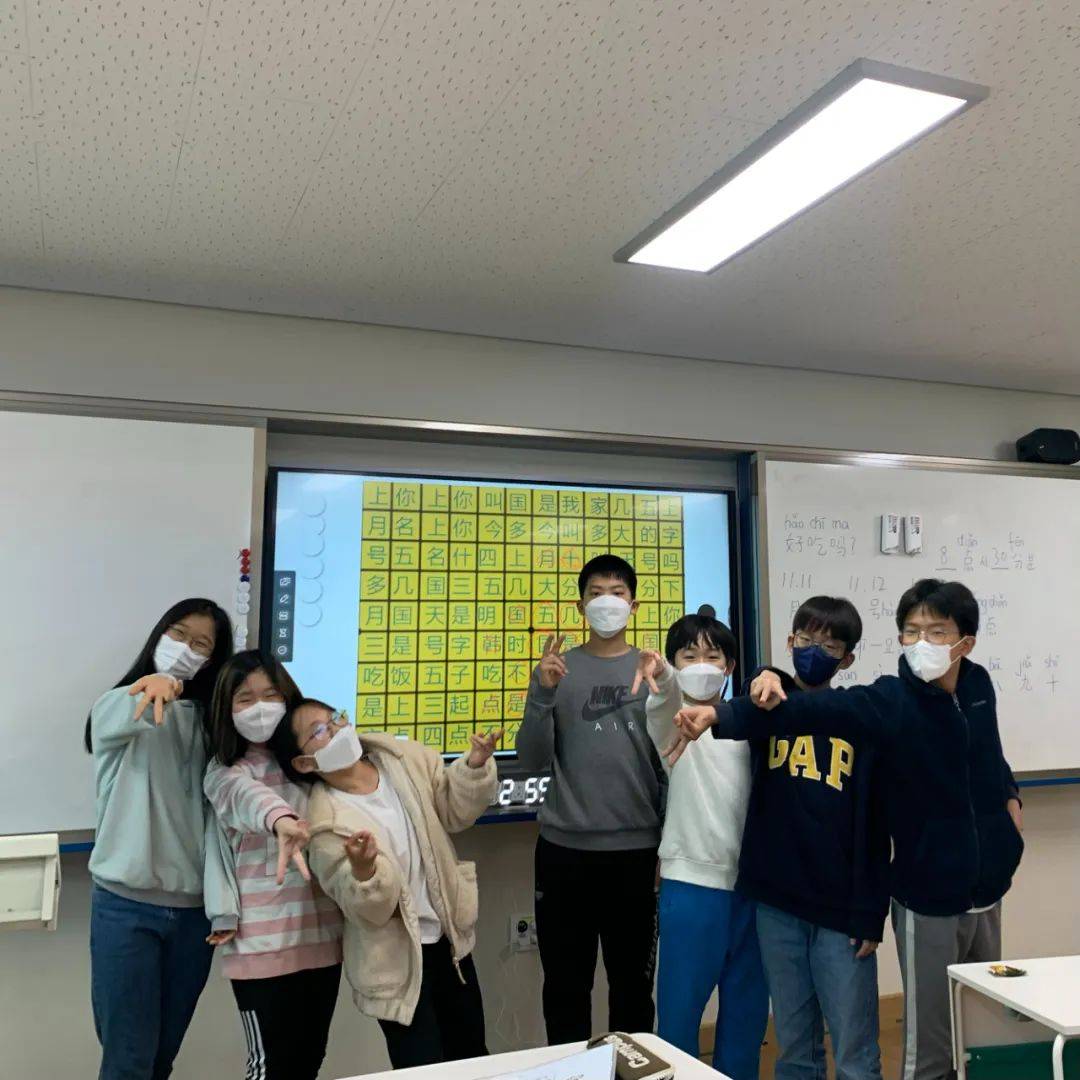 在工作一段时间后发现,原来我的周围隐藏着那么多会说汉语的外国人,一起工作的美国老师,毕业于北语中文系的学生家长,想开咖啡厅的小学老师……如今我的课上不仅教授语言知识和中国文化,还会教学生们一起唱中国的歌曲,看到学生能开心地学习中文,我也感觉小有成就。我一直坚信用真诚能换来真诚,在韩国教学的这段时间,我尽自己最大的努力去做到最好,也如愿收到了老师和学生们的肯定。