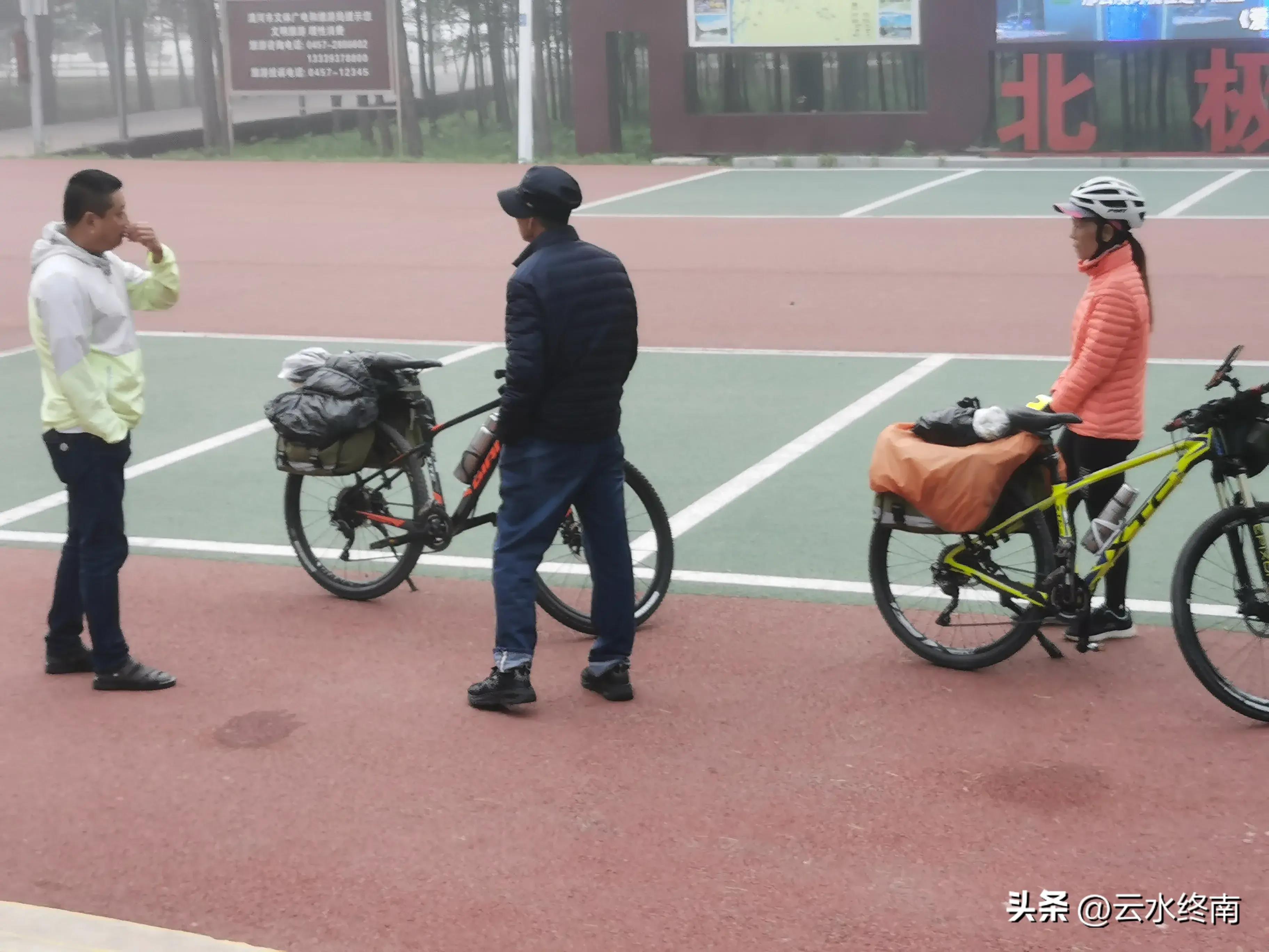 还有两个骑行者,从大连沿着国境线骑行了四千多公里,已经走了一个半月,还是女的,真是令人佩服。