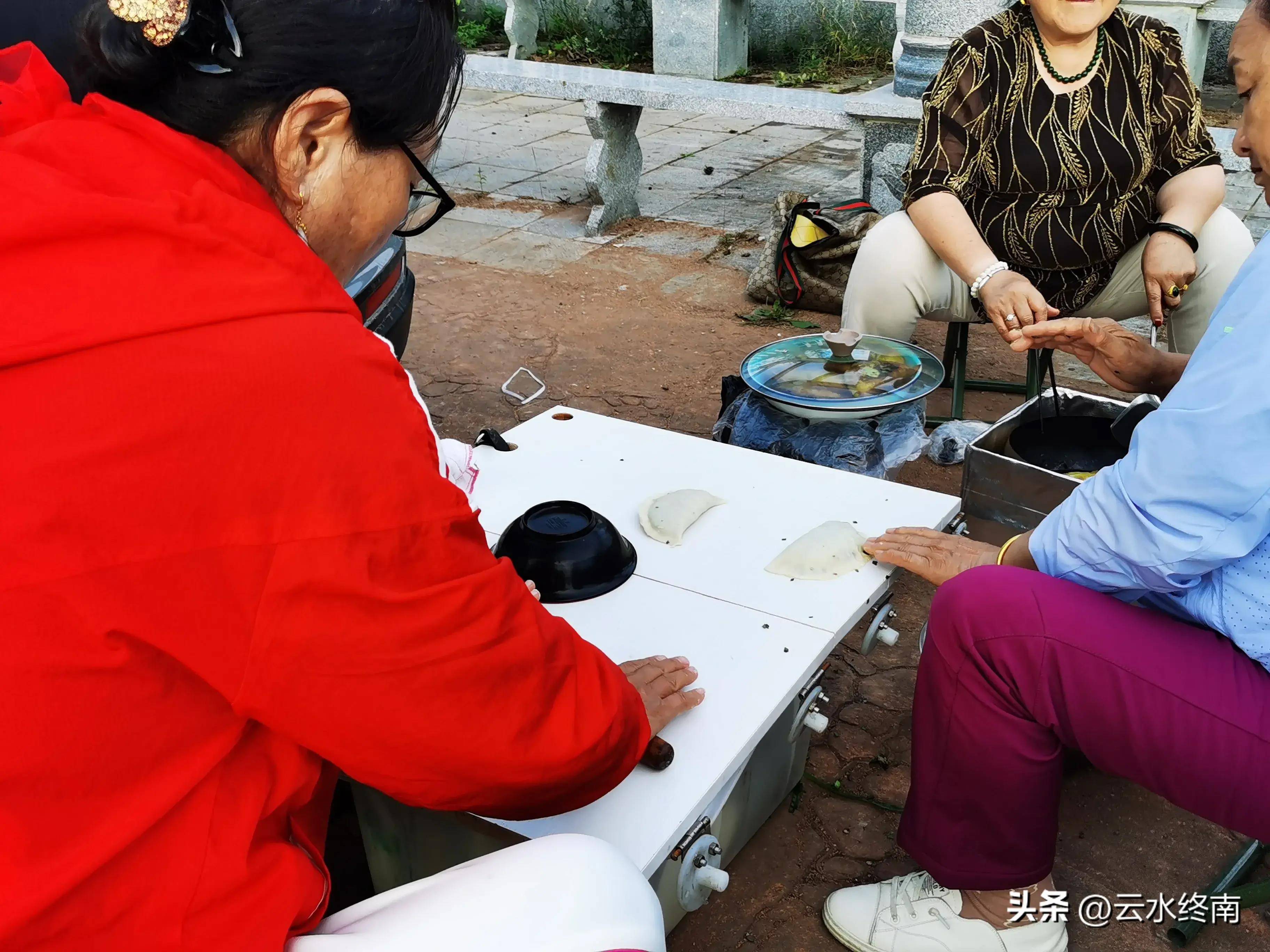 都是六十多岁,现在男人喝茶聊天,女的做饭劳作,做菜盒子熬稀饭。