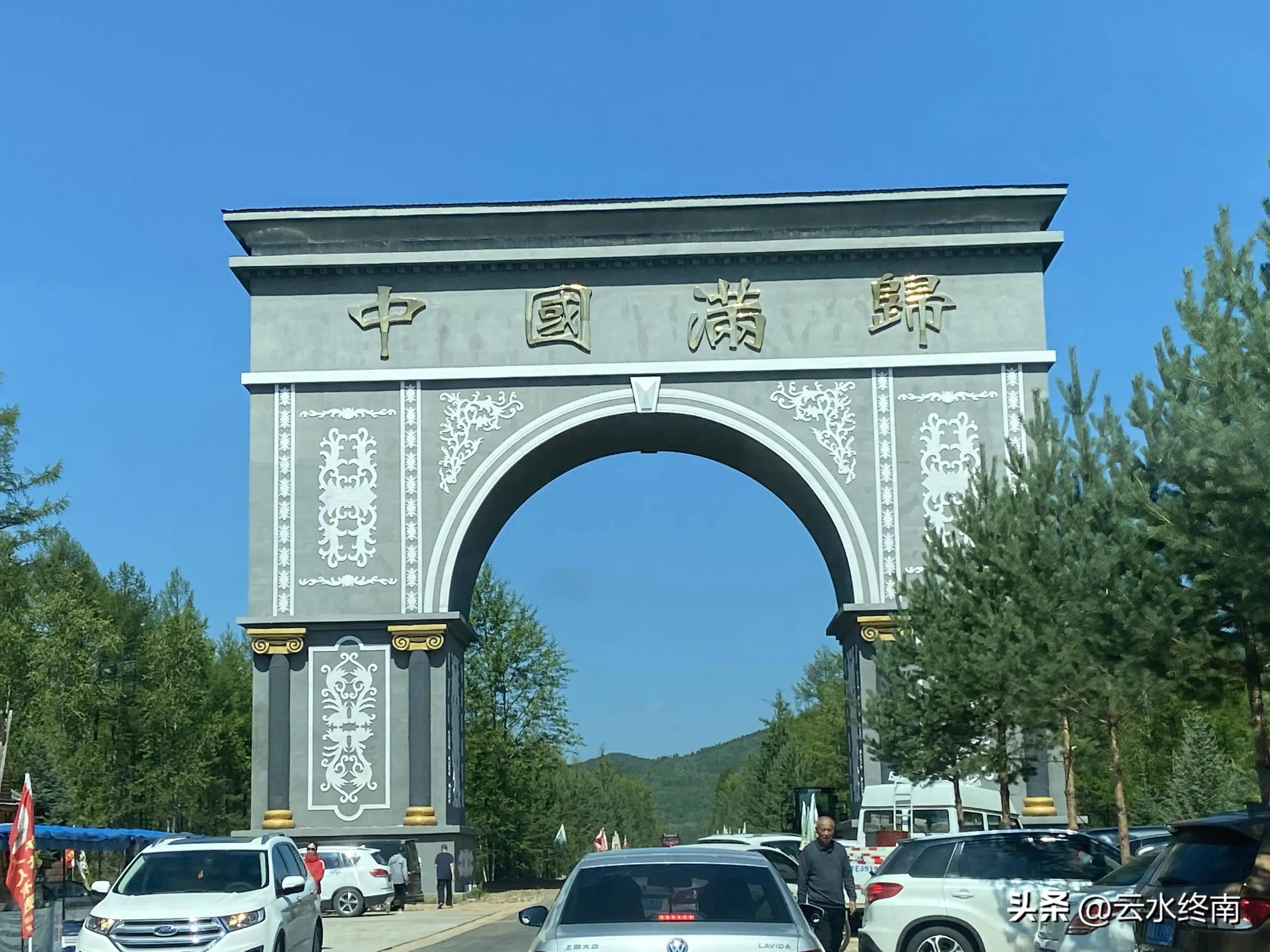 路上有个大门“中国满归”,很是气派,查了资料知道满归镇因满归镇地处孟库依河南岸而得名,“满归”为“孟库依河”河名谐音。