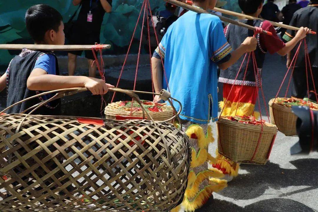 据悉,壮族婚礼已列入清远市第五批非物质文化遗产保护名录,主要分为订婚、嫁娶、回门三个环节。在传统的壮族婚礼习俗中,新娘出嫁日要穿黑衣黑裤,不管晴雨天均撑黑布伞。新郎的迎亲队伍是由媒人公(婆)、新郎、接亲娘,跟着是抬礼杠的小伙,后有壮族八音队和抬彩礼的接亲人员组成;新娘的送亲队伍是由新娘、送亲娘,然后是送嫁的队伍组成,送嫁的队伍越长表示家境越好,嫁妆越丰厚。此次“壮族婚礼演绎”是以壮族民众的婚礼文化为基础,结合永梅蒙峒古村的场景资源与婚嫁习俗,打造出的一场真实有趣的壮族特色婚礼。