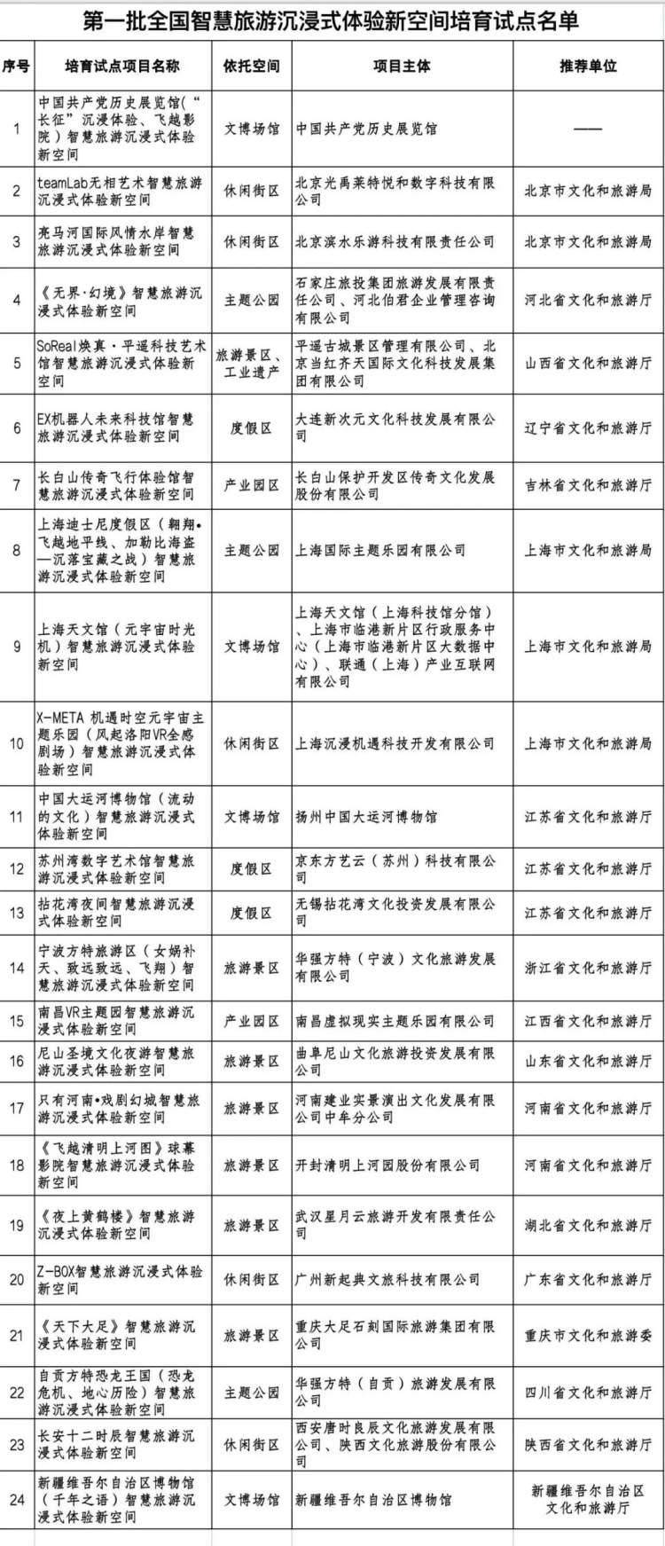 第一批全国智慧旅游沉浸式体验新空间