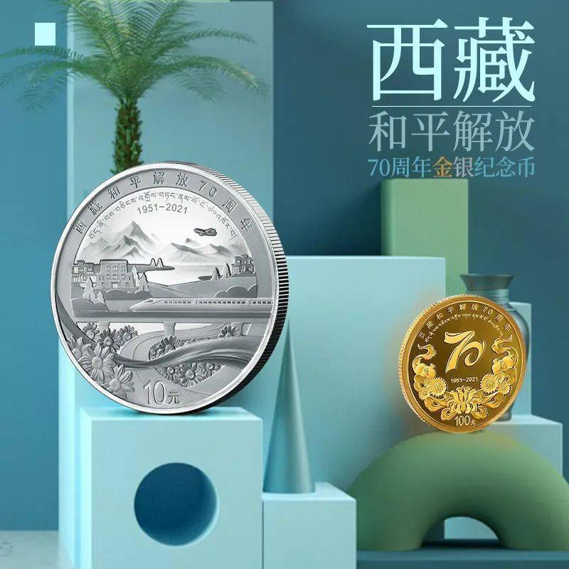 今天发行的这套西藏和平解放70周年金银币,将满满的情怀融入其中。银币设计元素多而不杂,层次感分明,表现了西藏和平解放70年来的建设成果;