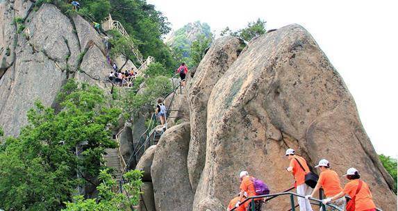 然而在西山景区内,必去的景点就要数罗汉峰,在罗汉峰上云集了大大小小十余个景点,其中有仙人过、凤舞松、将军峰、兔耳峰、参娘望夫、参娘洞、叠翠峰、姐妹松、老牛背、百步紧、三云台、天下绝,其中最惊险刺激的就要数老牛背。