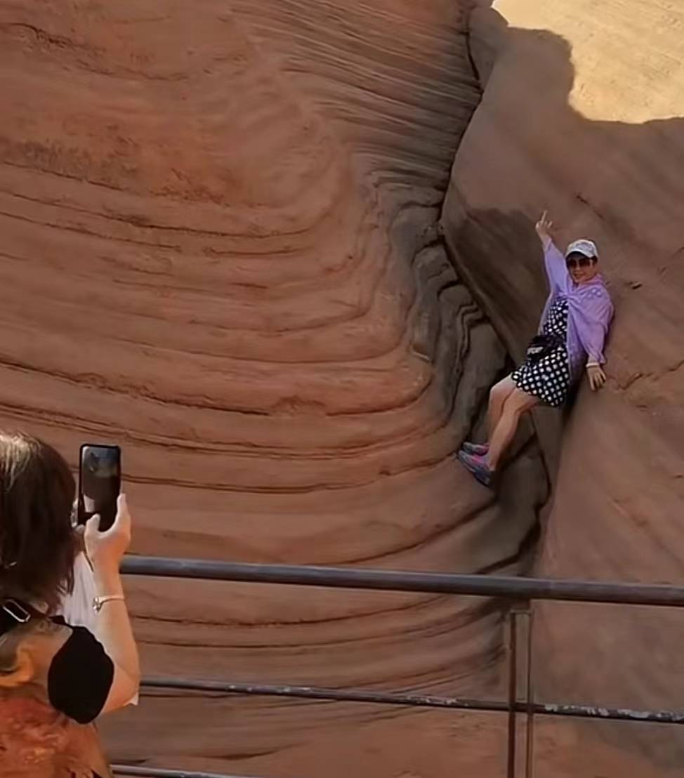 对此,波浪谷工作人员回应称,丹霞地貌不允许踩踏,这是不可修复的。一般情况下,会有专人进行巡逻,发现该行为后会对其进行劝阻,甚至会报警处理。从工作人员的回应来看,踩踏丹霞地貌本身就是不被允许的,而景区在山前专门设置了围栏的目的也是为了避免游客攀登或者踩踏对景区的环境造成破坏,而这位大妈却为了拍照,违反规定,不仅对环境造成了破坏,而且还对影响自身的安危!
