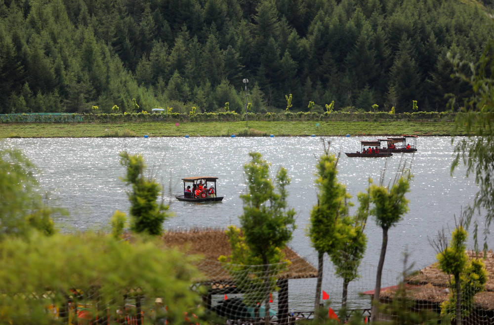 ▲8月6日,巫溪红池坝景区,众多游客正在海拔2000多米的湖泊草场休闲游玩。