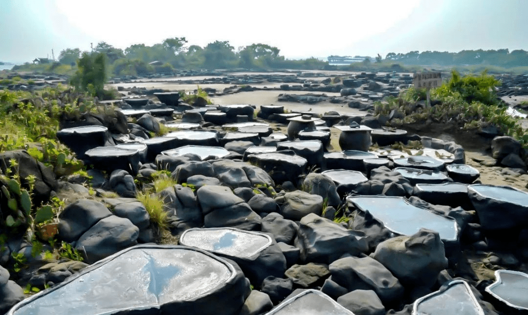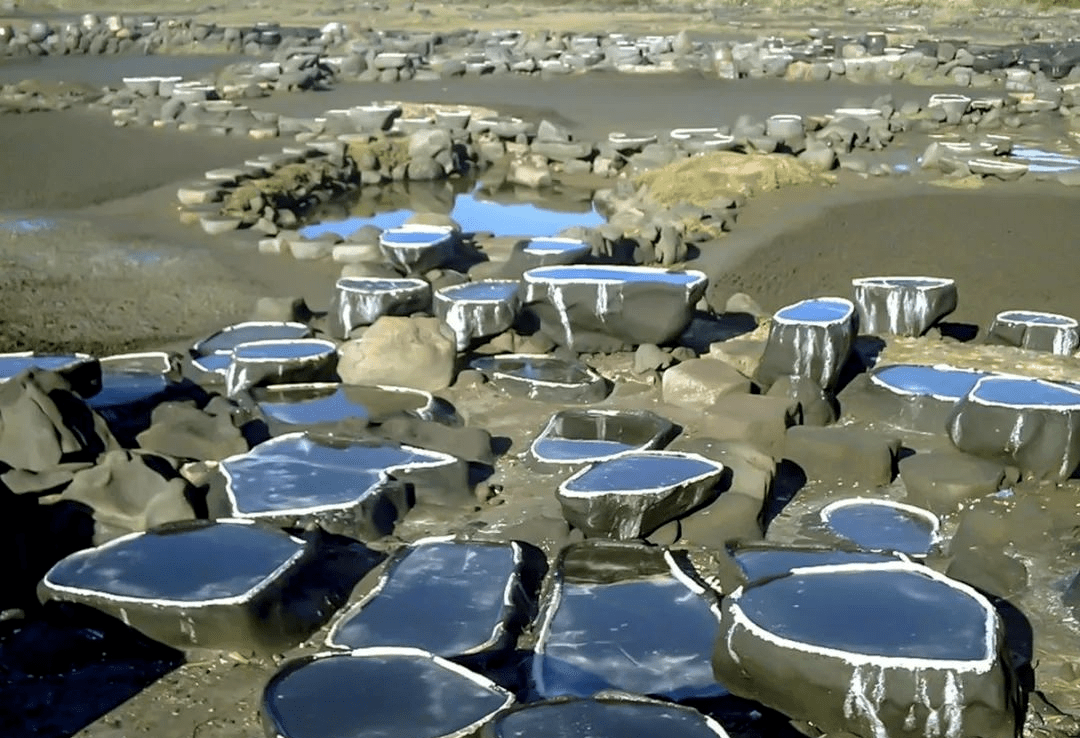 1000多个形态各异的砚式食盐槽在海滩上排开,场面十分壮观