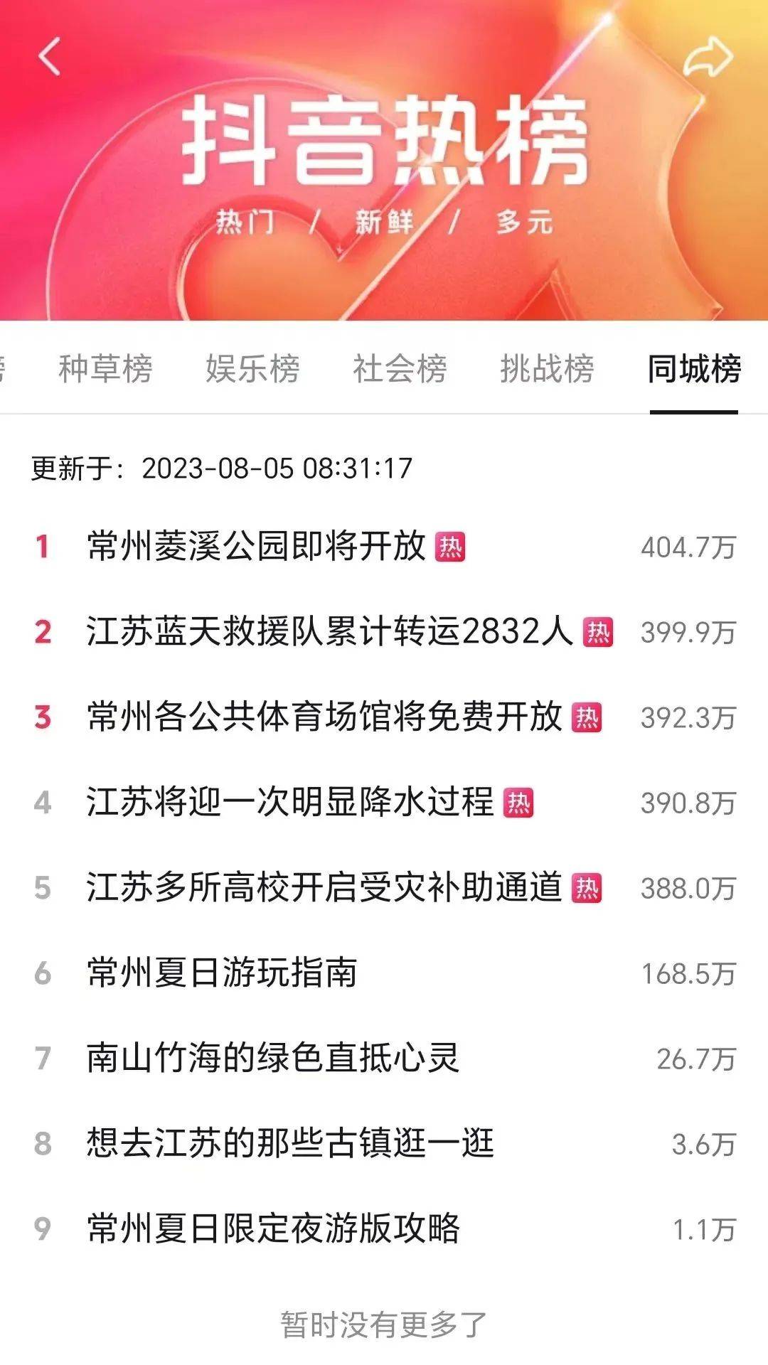 菱溪公园迅速冲上抖音同城榜热搜!