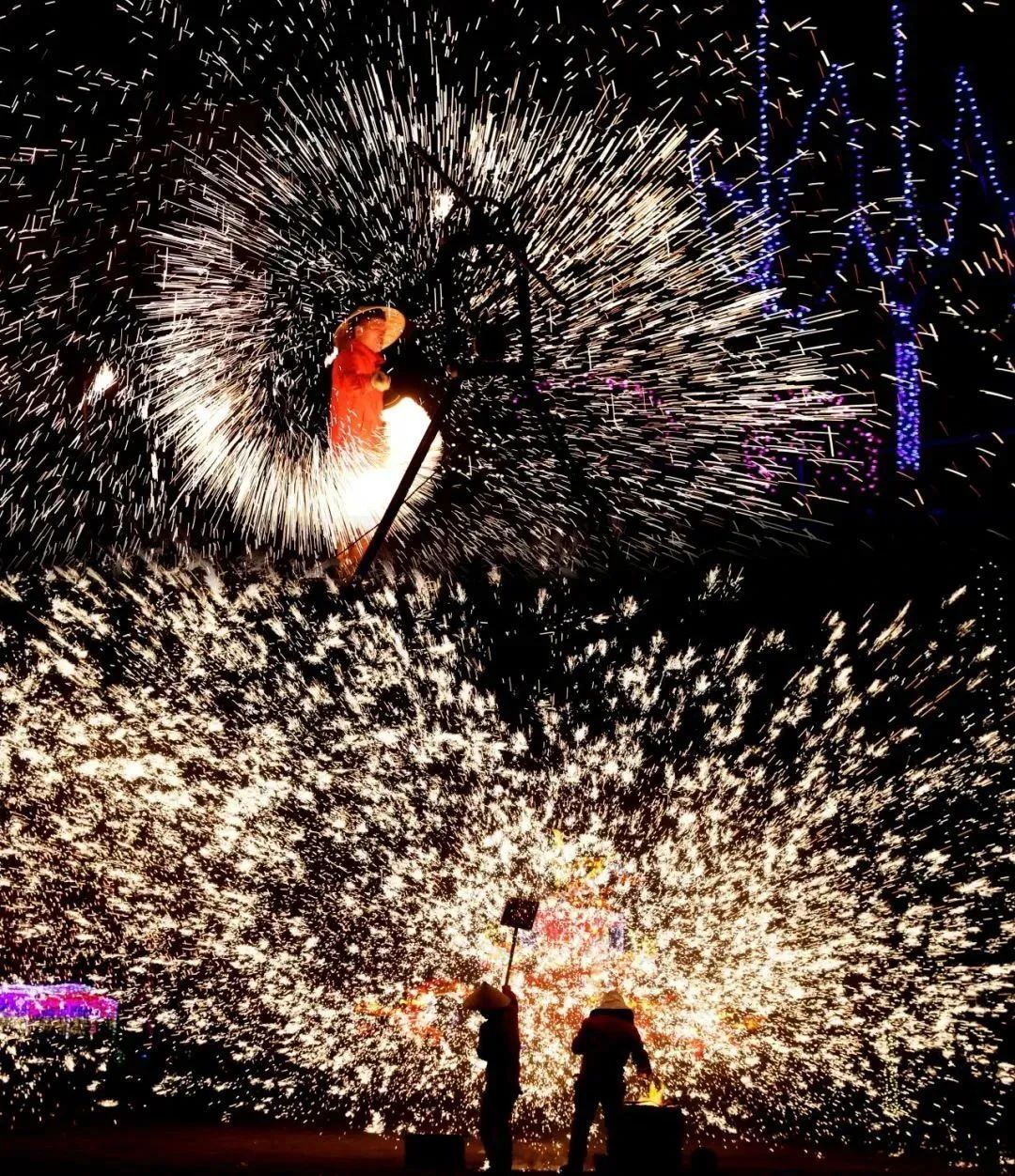 活动内容:中国最狂野的民间艺术“打铁花”将现身莲湖乐园!在盛夏余温褪去的莲湖乐园,当滚烫的铁水被挥洒至天空,一时间璨如繁星,绚若天河,转瞬又如流光飞舞,星河流转,你能听到匠人们汗水滴落、1600°C铁水被啪啪击打的声响,你能感受到亿万花火划过天际的震撼!仿佛满天星辰都触手可及,有种流星雨哗哗下落的梦幻感!每打一次都震天动地、摄人心魄!