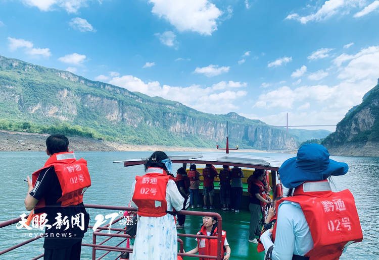 7月27日,乘船游览乌江源百里画廊,游客周国军大赞:“清风送爽,峡谷绝美!”据悉,经过贵州省交通运输厅的积极探索,全省已有旅游航道里程642公里、旅游航线46条、旅游客运码头92座、旅游客船1150艘,旅游航道沿线辐射全省27个县。(贵州日报天眼新闻记者 曹雯)