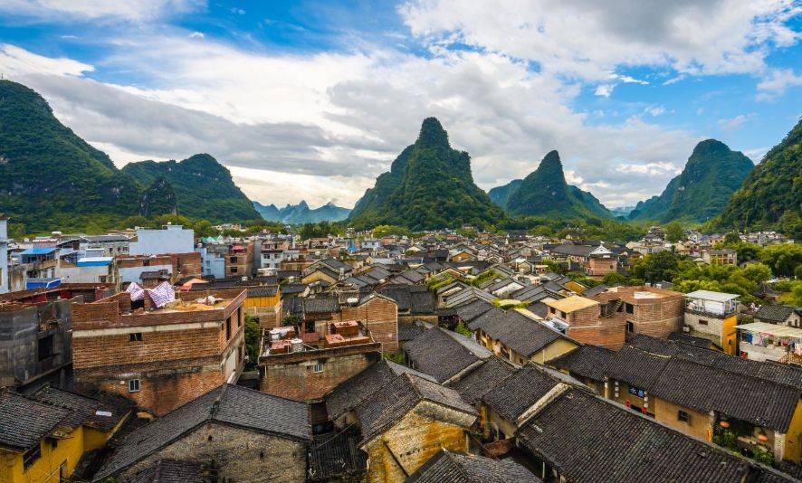 黄姚古镇占地面积不到2平方公里,却有着600多年的历史。这里的建筑风格独特,大量保存着明清时期的建筑,古色古香。小桥流水、绿树成荫,古朴的民居、古色古香的街道,让人仿佛穿越到了古代。