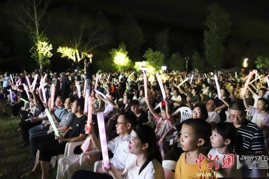 中新网福建新闻8月6日电 (黄言亮 梁宪辉)5日晚,中国四大名洞福建将乐县玉华洞轻奢露营基地“星光”点点,2023将乐“鲜氧+音乐露营节”在这里唱响,数千名观众手持荧光棒、荧光手环,跟着音乐节奏,共同感受露营与音乐碰撞的夏日浪漫。