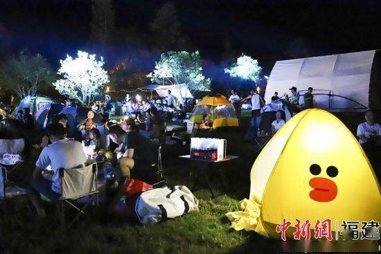 露营音乐节集音乐、露营、美食、灯光等互动于一体,来自厦门的UG乐队和提拉米苏乐队连番上场。一首首经典旋律点燃现场,活动还穿插了多轮互动小游戏,为游客们带来了一场不同寻常的夏日狂欢。“这里有绿树成荫的森林,清新的空气,坐在草坪上听音乐,形式很新颖,真是一个美好的夜晚。”市民饶宴银说。