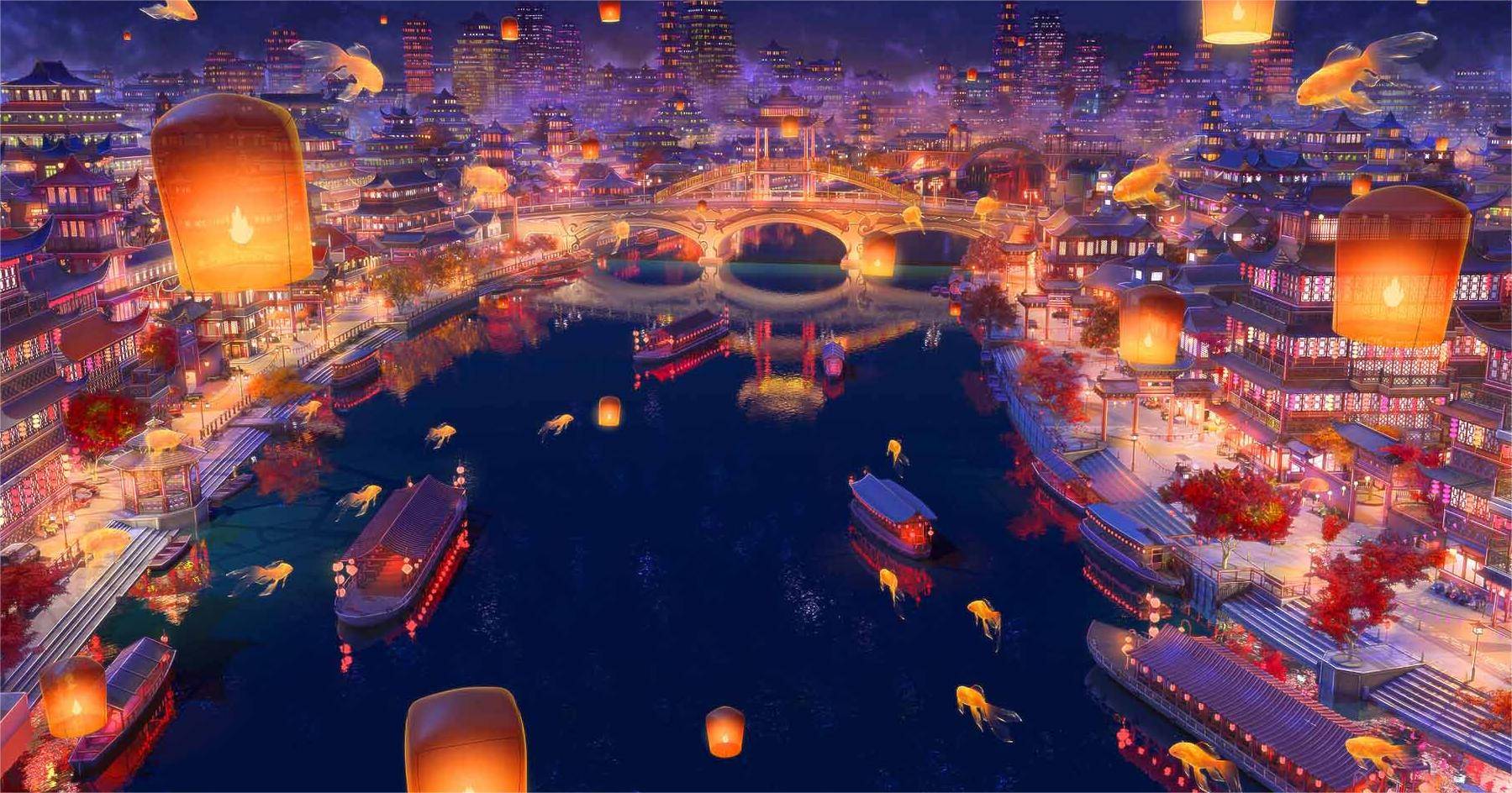 早期的夜游是达官显贵特有的娱乐方式,在百姓日落而息后笙歌宴饮,畅享夜游之乐,直到宋代,商业经济的高度繁荣推动城市空间乃至行为管理由“里坊制”向“街巷制”的关键转变,令身份象征的“夜娱”成了人尽可为的“夜游”,令城市真正成为生产生活高度融合且全天不打烊的综合体,酒肆勾栏、戏楼市集、各色节庆,越夜越精彩。据记载,北宋汴梁“夜市直至三更尽,才五更又复开张,耍闹去处,通宵不绝”,繁荣夜景令人神往。