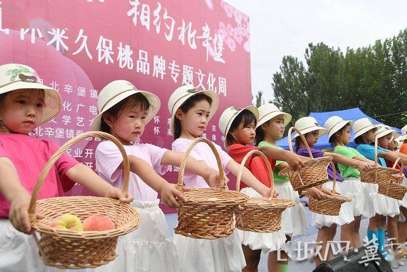 怀来县北辛堡镇蚕房营村举办久保桃专题文化周活动,小朋友现场向各位来宾赠送鲜桃。通讯员 孙慧军 摄