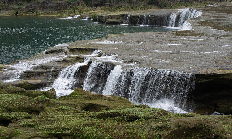 陡坡塘瀑布形成在钙化滩坝上