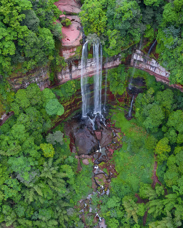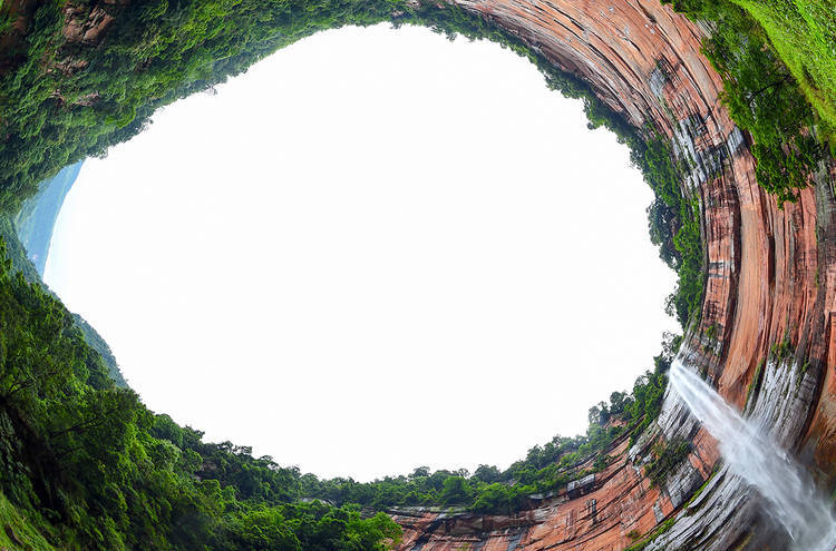 “千仞断崖边,悬挂珠帘。”佛光岩被称为“世界丹霞之冠”,是世界自然遗产“赤水丹霞”核心景区之一。佛光岩瀑布从200余米高的山崖飞跃而下,飘逸俊洒。